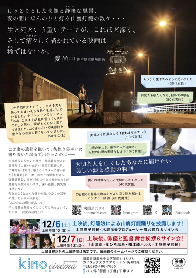 福岡市中央区大名「キノシネマ天神」で映画『骨なし灯籠』が公開。